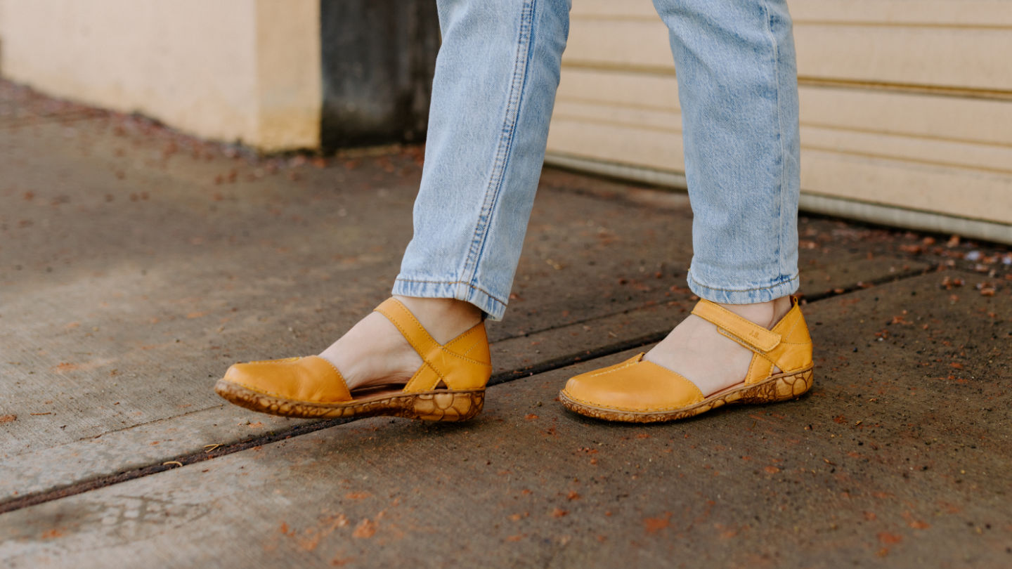 This chic silhouette is the ideal casual summer shoe. Open but still a closed toe. And they're great for travel.