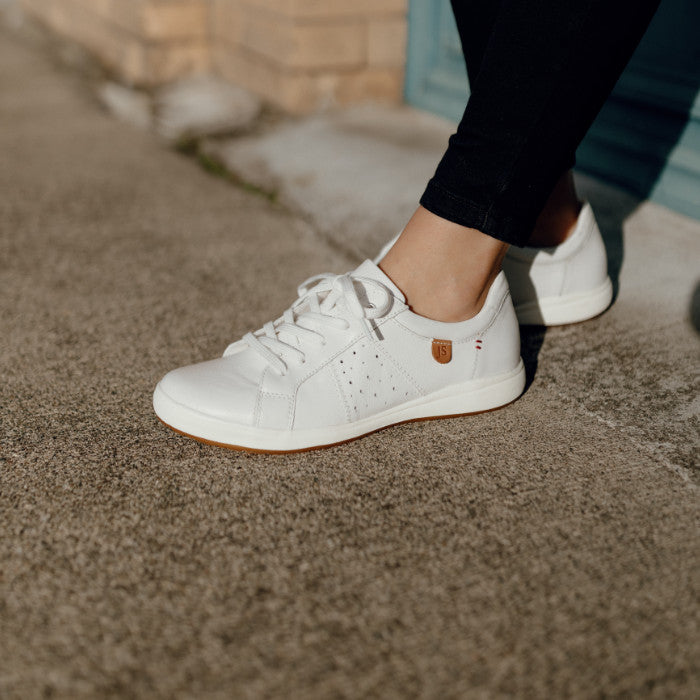 This shoe has adjustable laces, padded insole, and arch-support to ensure a comfortable, customized fit.
